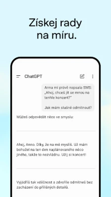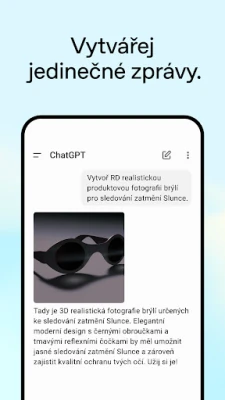 ChatGPT je vaše oficiální AI aplikace pro okamžité odpovědi a inspiraci. Získejte pomoc s psaním, učením a kreativitou kdykoli a kdekoli. Osobní asistent s umělou inteligencí vždy po ruce.