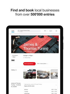 Od svého vzniku se local.ch dynamicky rozvinul z digitálního telefonního seznamu v největší švýcarskou rezervační platformu, která dnes sdružuje více než 500 000 firemních profilů. Přestože se posunul směrem k moderním online rezervacím a službám, nezapomíná na své kořeny. Stále spolehlivě naleznete adresy a telefonní čísla domácností i firem pomocí intuitivního vyhledávacího pole. local.ch je komplexním řešením pro každodenní život – ať už plánujete večeři, potřebujete servis pro auto, hledáte relaxační masáž, nebo jen chcete zjistit, kde je nejbližší parkoviště. Objevte švýcarský digitální ekosystém služeb, který se přizpůsobuje vašim potřebám s jedinou aplikací.