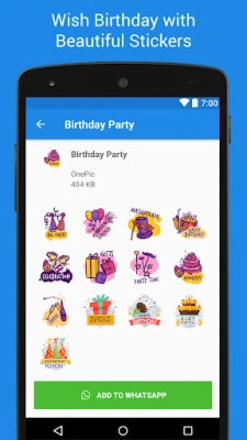 Udělejte narozeniny nezapomenutelné! Aplikace „Narozeninové nálepky pro Whatsapp - WASticker" přináší pestrou sbírku originálních samolepek. Pošlete jedinečná a srdečná přání svým přátelům a rodině přímo přes WhatsApp a vykouzlete jim úsměv.